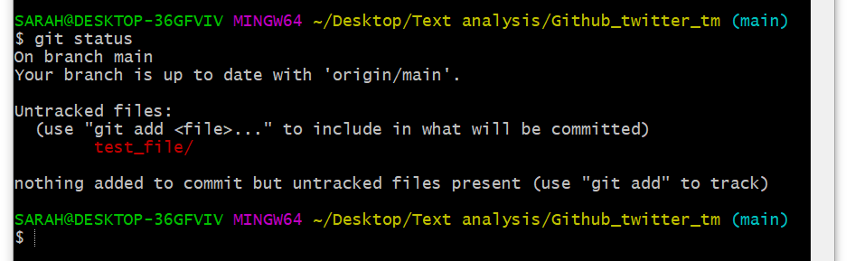 나는 폴더 째로 넣어줄 것이므로 $git add test_file을 입력했다.